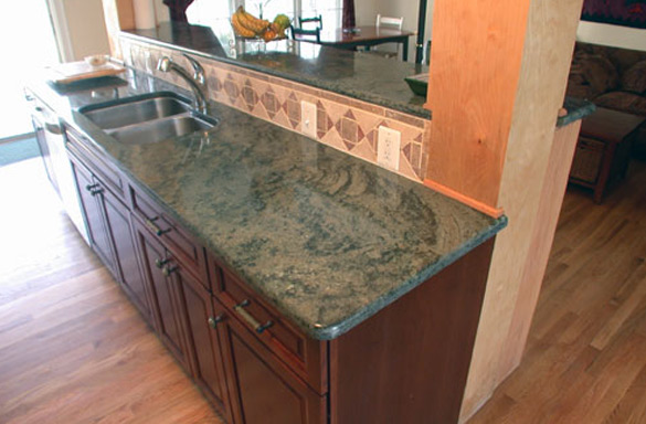 Tropical Green granite features shades of light and dark greens with small fleck veining of deep reds.